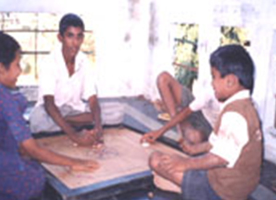 Al-Shifa School Mentally retarted childrens is playing carom board every day evening