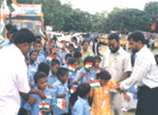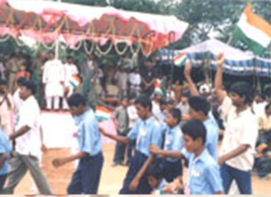 All of our Children are participating in the procession along with the teachers and staff in the kadapa District Police Ground, on the Independence Day Celebration. Behind seen our school van decorated with Banners and other material. 15/08/2006